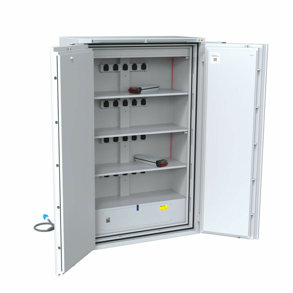 De Seefion 20 is onze grootste accukluis met 20 oplaadpunten waarin je Lithium-ion accu’s veilig oplaadt. Ben jij in het bezit van veel accu’s en wil je jouw accu’s efficiënt opslaan? Dan is de Seefion 20 de juiste keuze voor jou.