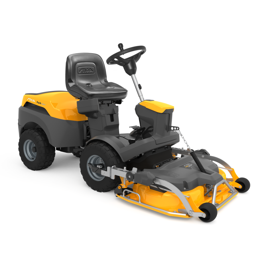 Stiga Park 500 frontmaaier. De Park 500 frontmaaier combineert betrouwbaarheid en wendbaarheid in een machine. Aangedreven door een betrouwbare STIGA 432 cc eencilindermotor. Dankzij de unieke knikbesturing (50:50) en de stuurbekrachtiging helpen u gemakkelijk rond obstakels in uw tuin rijden. het maaidek vooraan biedt bovendien een ongehinderd zicht over het terrein, vlotte besturing in bochten en mooie afwerking van de boorden.